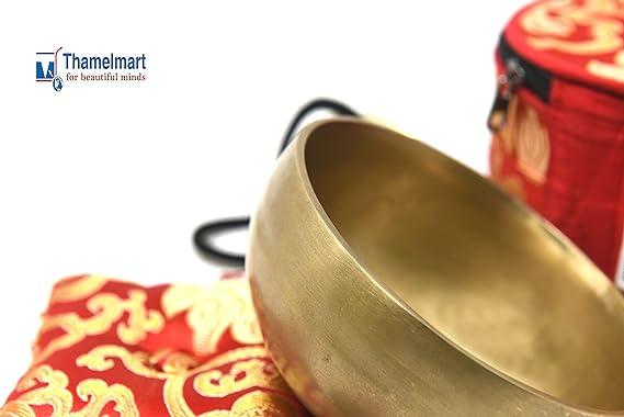HAND-PAINTED BY ARTISTS at Thamelmart Design with the most detailed art you have ever seen on any Tibetan singing bowl set; Crafted to perfection for an emotionally calming, healing and long lasting ambient sound