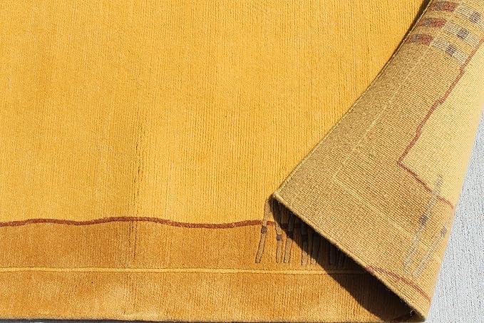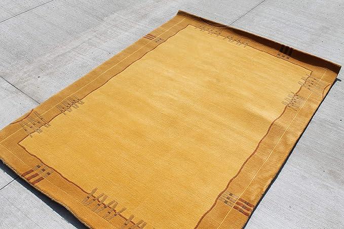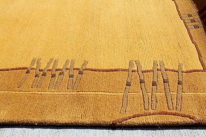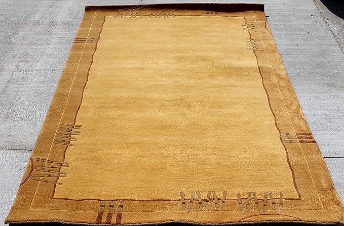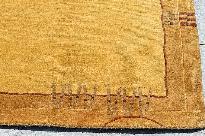 Beautiful border design with tiny patterns, hand-knotted rug on traditional Tibetan weaving technique.